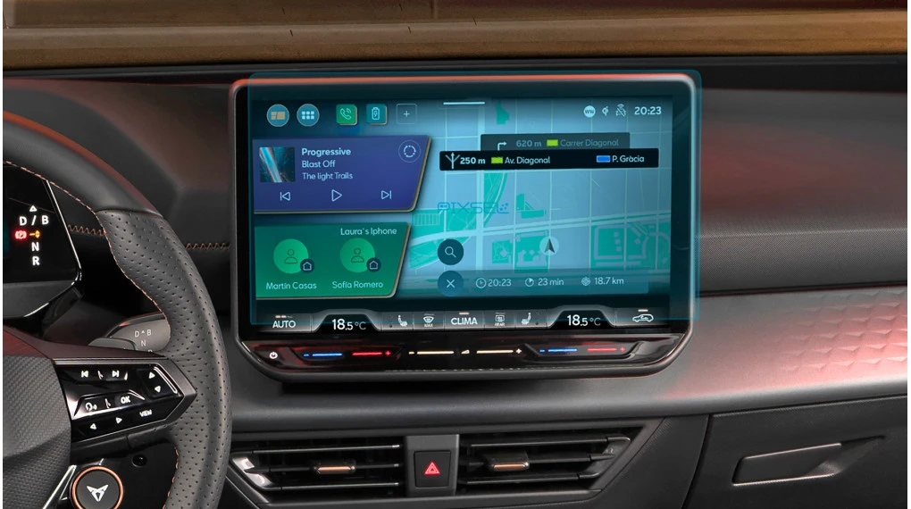 La producción se realiza con tecnologías de alta precisión, lo que elimina cualquier defecto. Cada cristal se ajusta con máxima exactitud a las dimensiones originales de la pantalla del vehículo, sin huecos ni desajustes.